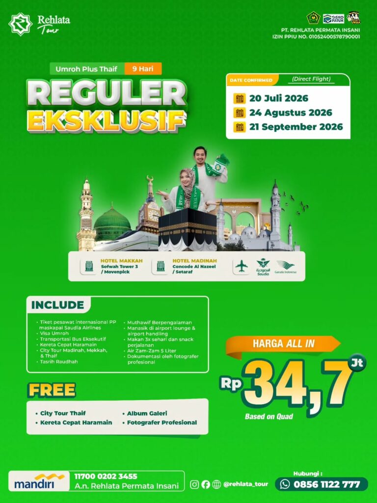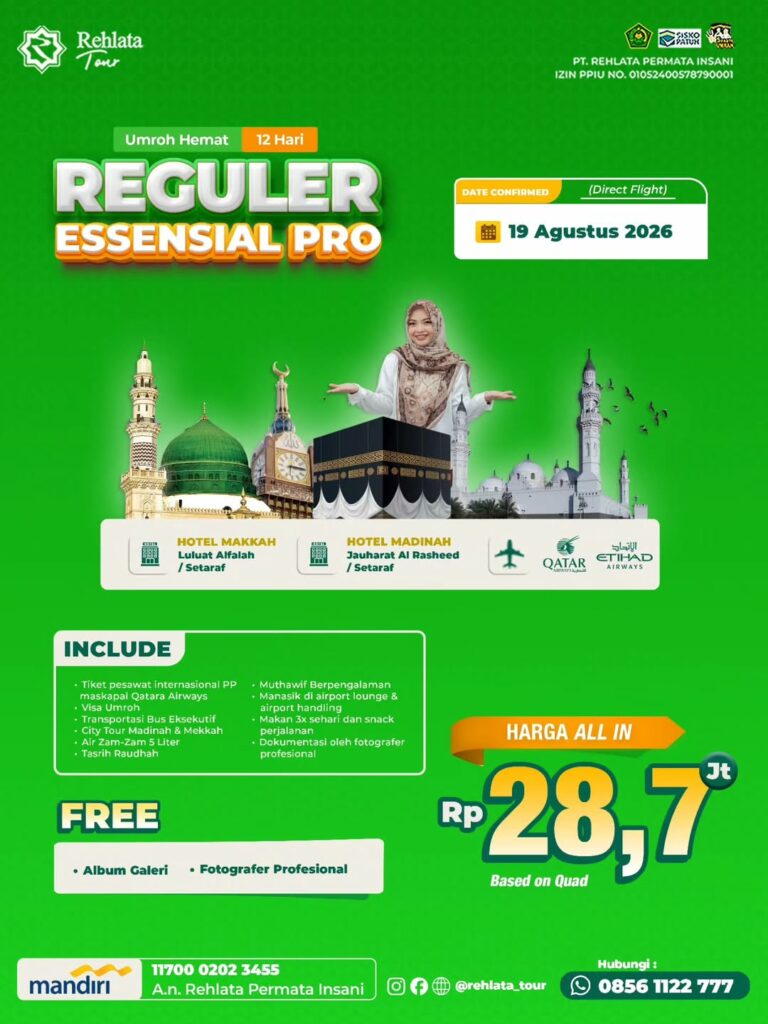 Melaksanakan ibadah Umroh bukan sekadar perjalanan biasa, melainkan perjalanan spiritual yang dinanti-nantikan setiap muslim. Memahami kebutuhan tersebut, Rehlata Tour (PT. Rehlata Permata Insani) hadir kembali dengan deretan paket Umroh untuk keberangkatan tahun 2026.